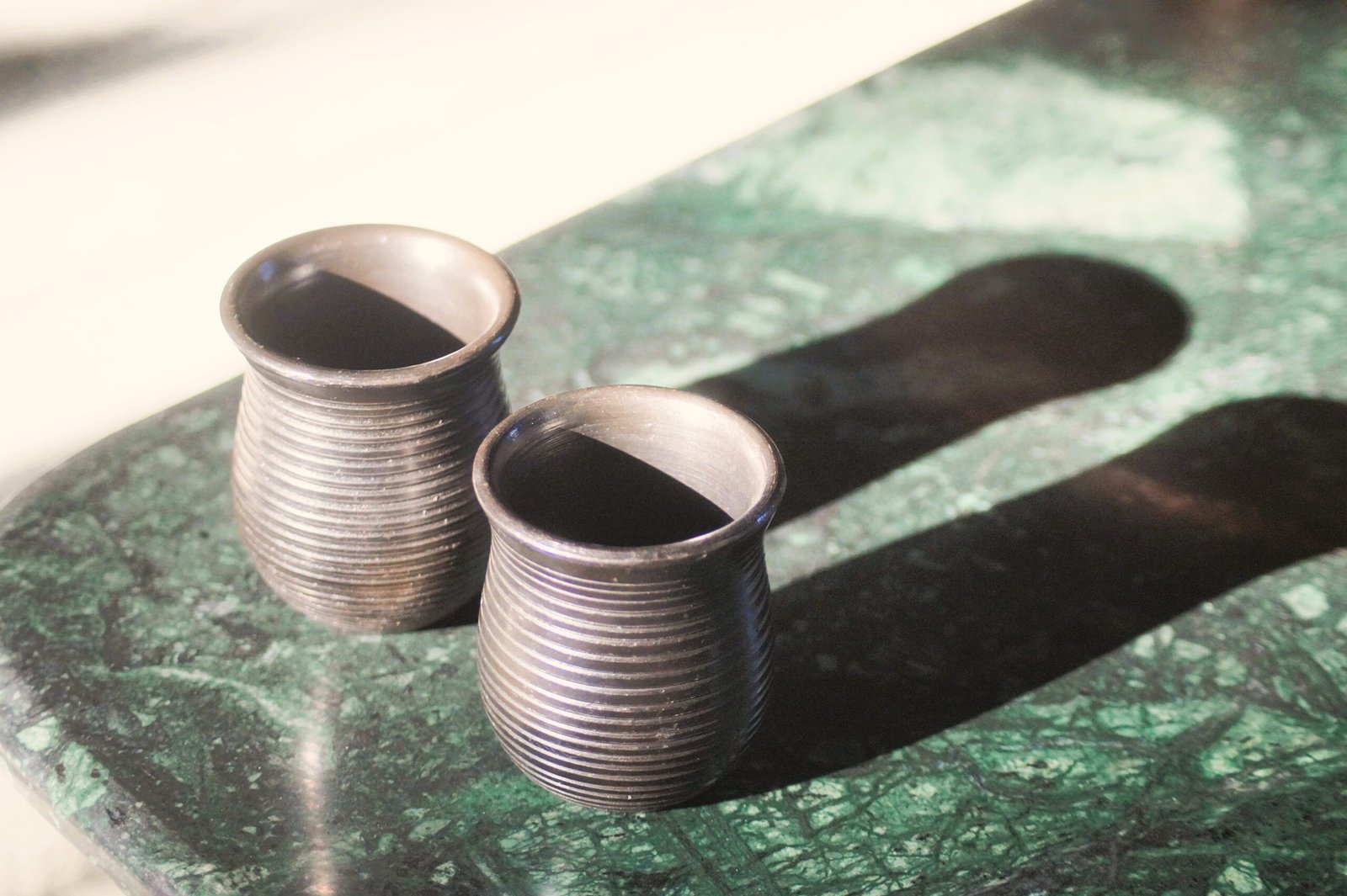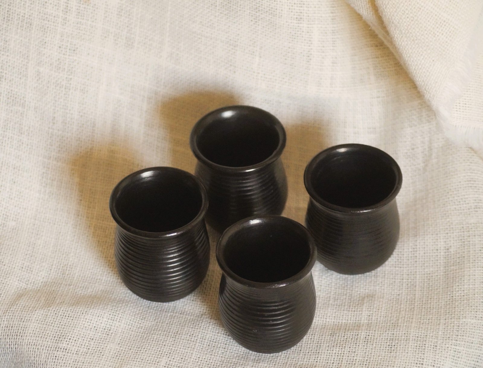 Immerse yourself in the zen of slow living with this Patterned Tea Cups from Sarthak Collection, crafted from natural black pottery and adorned with an intricate round pattern. The hand-etched design adds depth and texture, making each sip a sensory experience. Black pottery not only enhances the authentic taste of tea but also maintains its warmth, allowing you to savor each moment with presence. The fusion of raw craftsmanship and delicate detailing creates a harmonious balance of tradition and modernity, perfect for those who seek serenity in artistry.