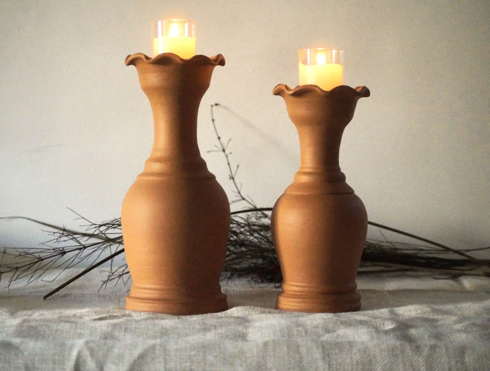 Illuminate your space with the elegance of the Raw Earthy Candle Stands from the Tejas Collection. Crafted with a raw, natural texture, these candle stands embody simplicity and warmth, making them a perfect addition to both Japandi décor and festive settings. Their matte terracotta finish enhances the organic beauty of handmade craftsmanship, creating a sense of grounding and tranquility.
