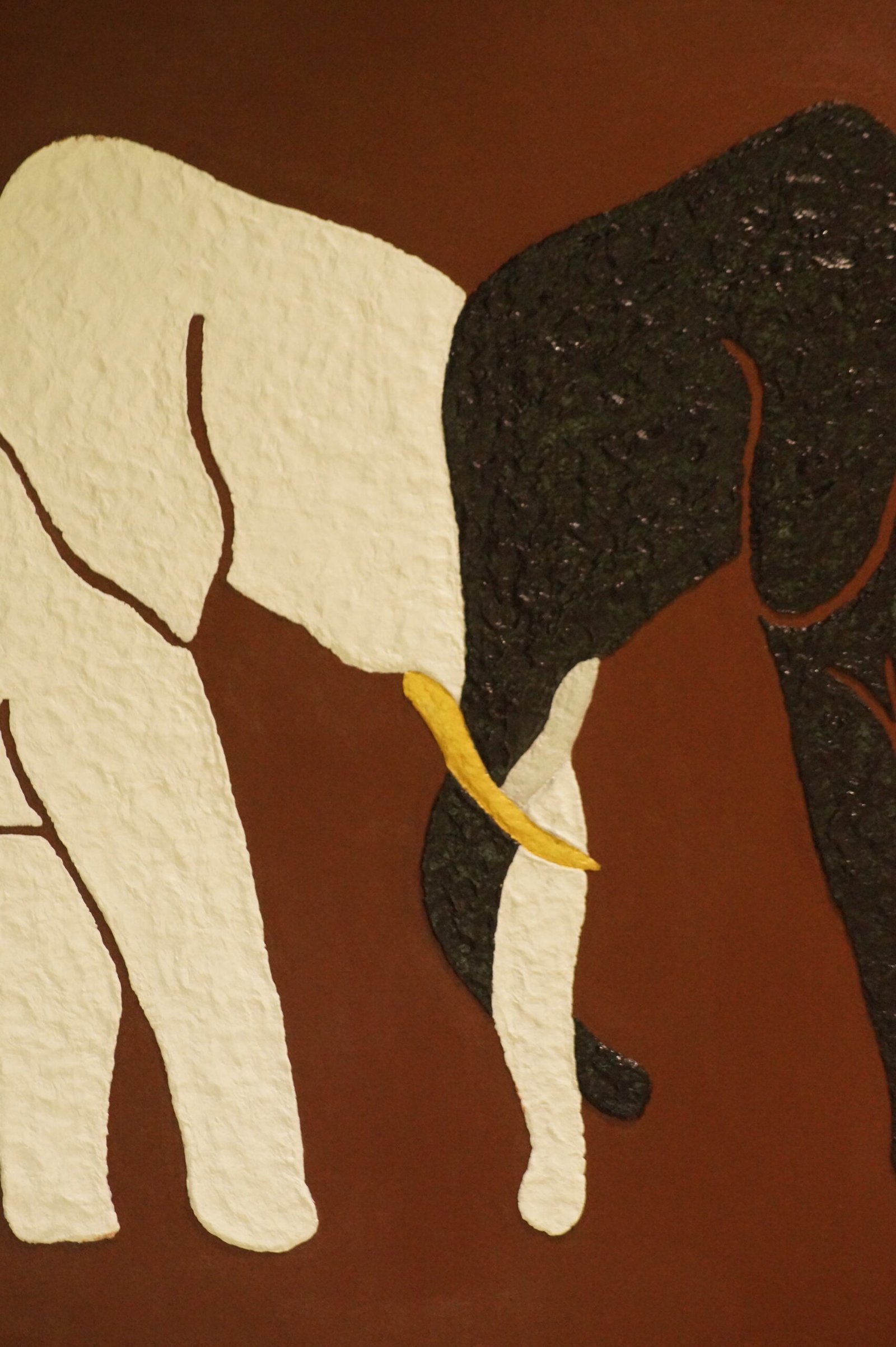 Handcrafted from paper mâché in deep black and pure white, the two elephants face inward in a gesture of harmony — their forms mirroring the timeless concept of Yin and Yang. Between them, a golden tusk and a silver tusk shimmer gently, representing not just contrast, but connection. Masculine and feminine. Light and dark. Outer strength and inner stillness.